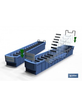 Gavetas para mostrador con separadores configurables y topes traseros para fin de carrera.