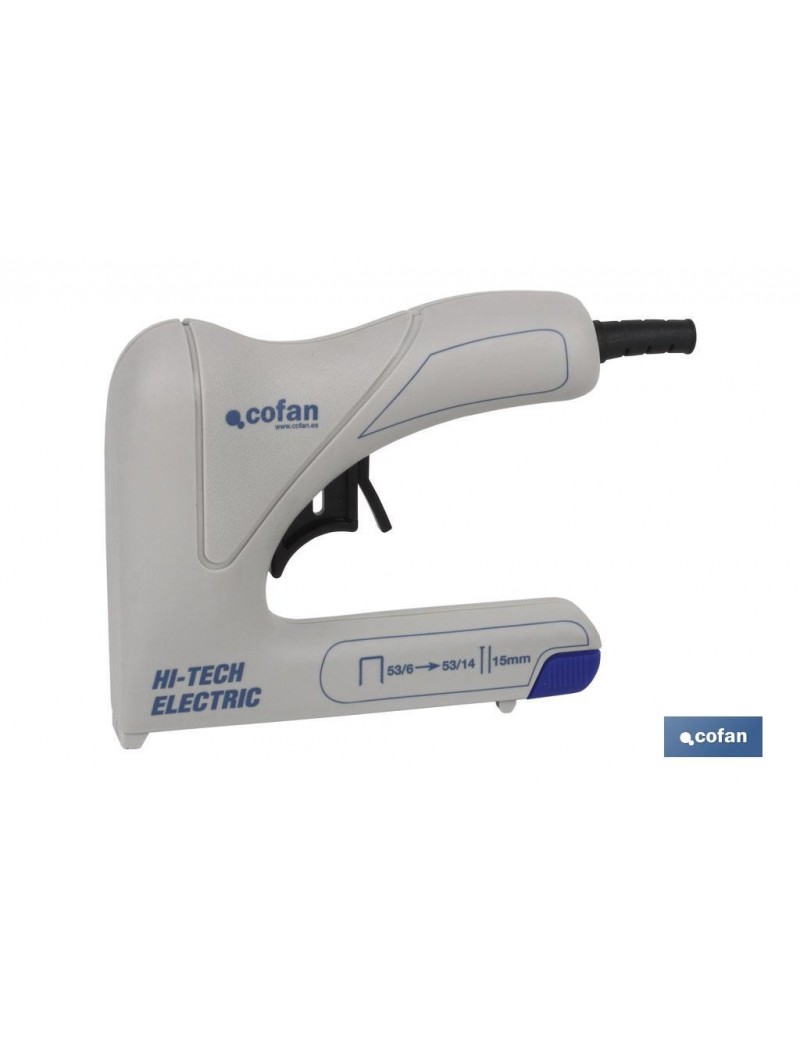 Grapadora y Clavadora Eléctrica para grapas nº 53 con medidas desde 6 hasta 14 milímetros de longitud y clavos de Ø1x1.25 15mm de longitud.