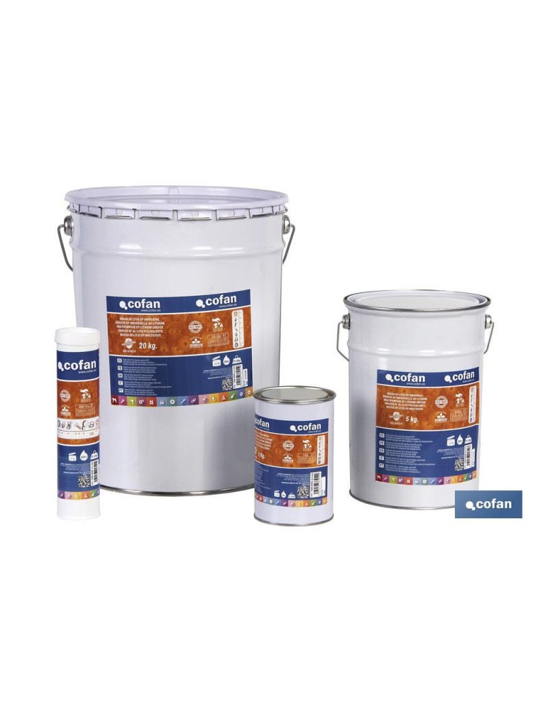 Grasa de Litio, en color caramelo. Existe una excelente relación entre calidad y rendimiento. Apta para mecanismos de cobre y sus aleaciones. Contiene una excelente bombeabilidad para mecanismos con lubricación centralizada. Resistente al lavado por agua y protege de la corrosión. Se utiliza para el engrase General, engrase a toda pérdida, cualquier tipo de rodamiento, maquinaria de todo tipo incluida la de obra pública, rodamientos, cadenas, todo tipo de articulaciones y puntos de fricción. También puede utilizarse para la industria agrícola, obra pública, minería, explotaciones de recursos, industria, sector naval, automoción y maquinaria de construcción. Nivel calidad · DIN 51825 KP825 KP2N-20 · ISO 6743-9 LXBDEA2 · ISO 12924: L-XB (F) CHB2 · G-403. Disponible en diferentes envases de 1 kg, 5 kg, 20 kg o en un cartucho de 400 g.