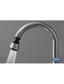 Grifo Borboteador con 2 Funciones. Se adaptan a todos los grifos estándar con rosca exterior de 22mm y rosca interior de 24mm. Apto para usarlo en grifos de baño y cocina. Posee un filtro aireador y también cuenta con un sistema de ahorro de agua al 30%. La medida es de 3,8 cm. Es muy fácil de instalar sin necesidad de utilizar herramientas profesionales. Rotación de 360° el agua puede llegar a todos los puntos del fregadero.