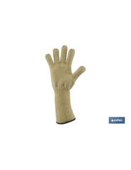 Guante Anticorte y Anticalórico con manguito de 15 cm. Resistente al corte y a altas temperaturas. 100% Para-aramid.CAT.II EN388:2016 EN407:2004. Talla única (10).