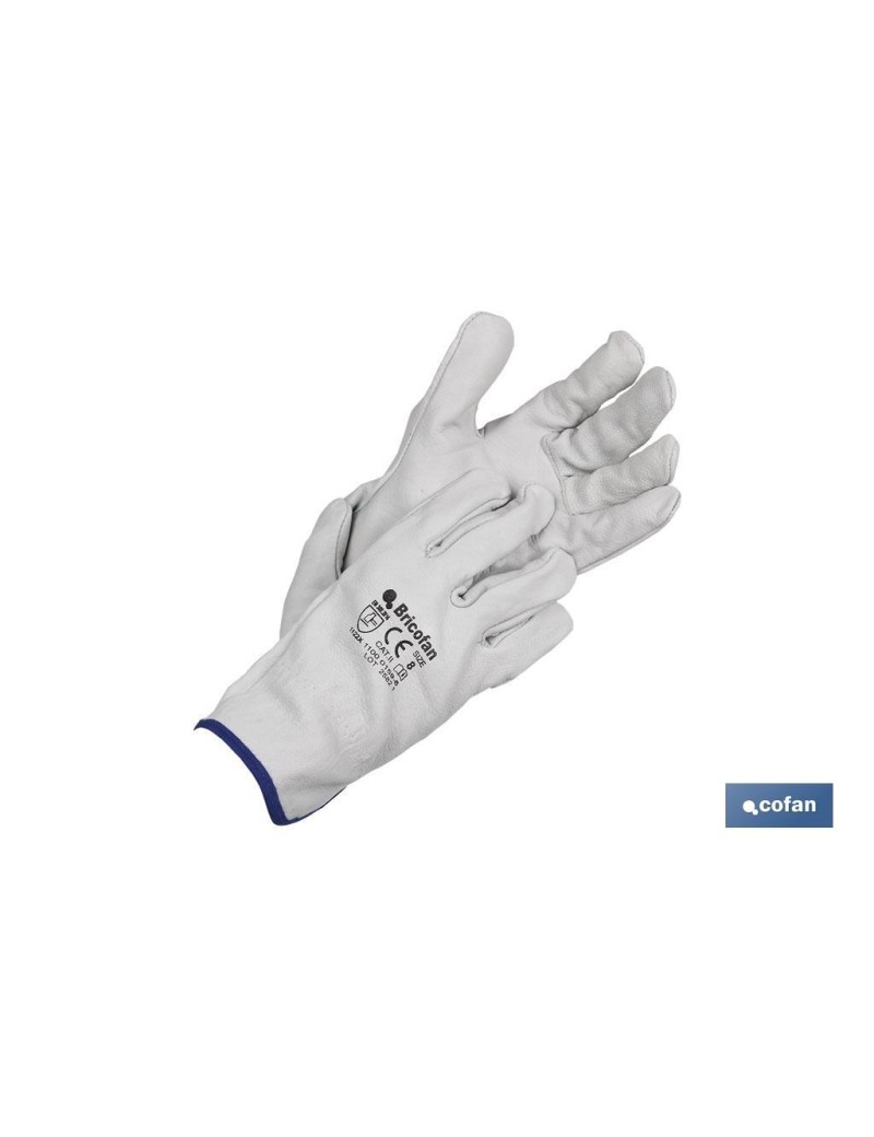 Guante piel flor Bricofan. Excelente tacto y perfecta adaptación a la mano. Ligero, de muy agradable uso. Disponible en tres tallas con y sin blíster.