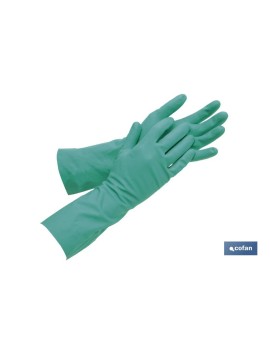 Guantes nitrilo verde UNE-EN 20388 flocado de algodón interior. Excelente resistencia a aceites, lejías, grasas y disolventes. Longitud: 33 cm. Grosor: 0,40 mm