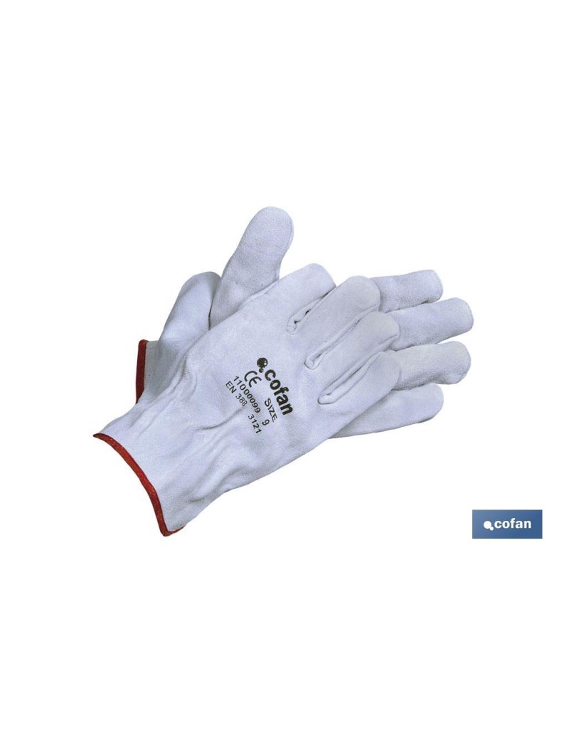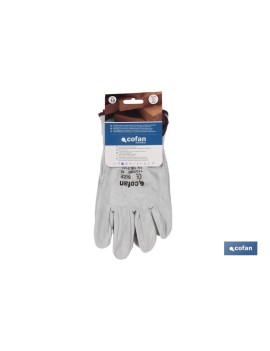 Guante de piel en serraje gris, UNE-EN 20388, color gris, pulgar plano, elástico de ajuste en el dorso, ribeteado en la muñeca. Es cómodo y duradero. Disponible en dos tallas con y sin blíster, además, también en formato unitario.