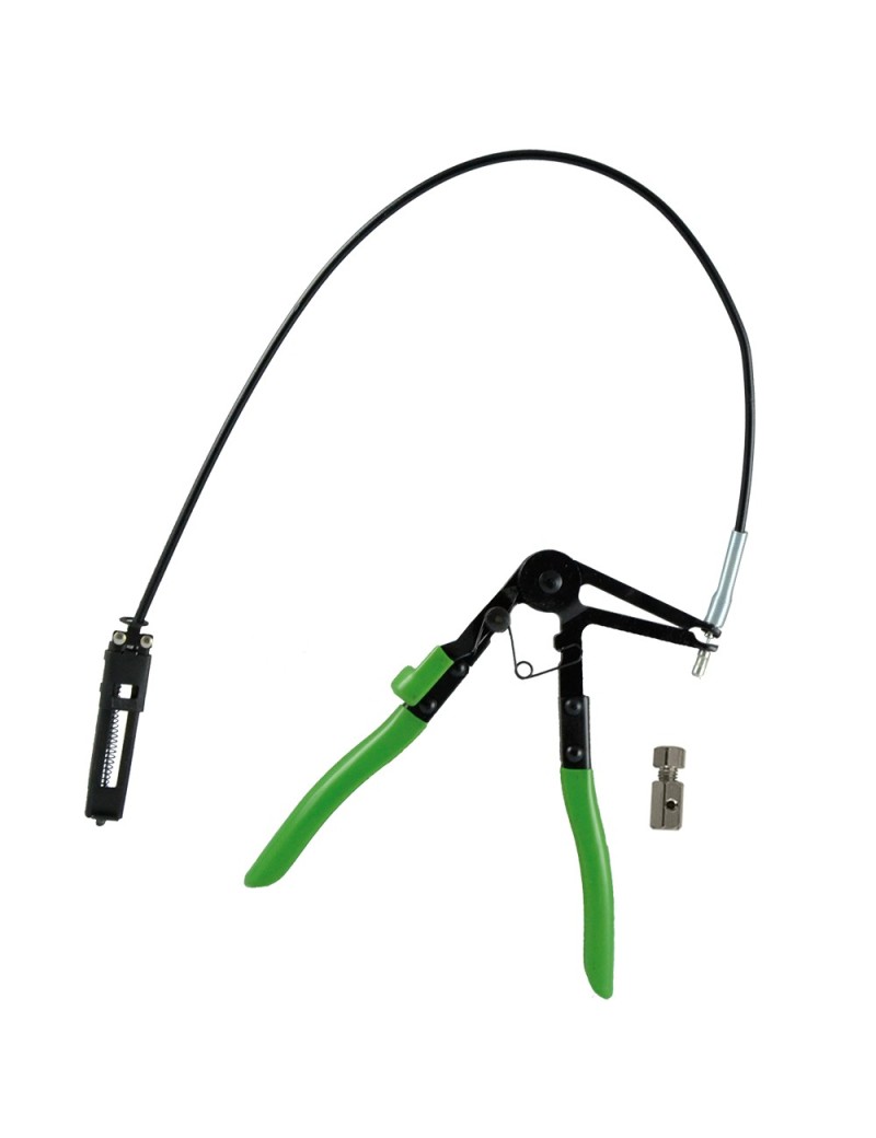 Con cable de 630mm Apertura de 47mm Para el reemplazo de los manguitos de combustible, aceite y agua. Para el apretado de abrazaderas. Cable de 630mm de largo. Conveniente para las ¡reas de trabajo de dif ­cil acceso y larga distancia