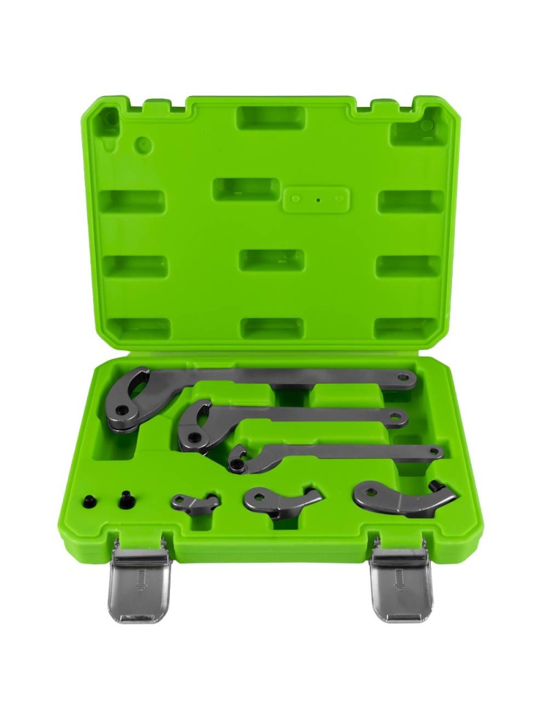 Kit compuesto por 3 llaves de gancho, 3 adaptadores y 2 pasadores intercambiables. Su combinaci ³n permiten trabajar con Diametros desde 35mm a 120mm. Largo de las llaves: grande: 250mm mediana: 177mm pequena: 160mm
