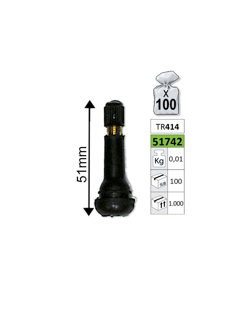 VALVULA PARA LLANTAS TR414 51MM. En bolsa de 100 unidades