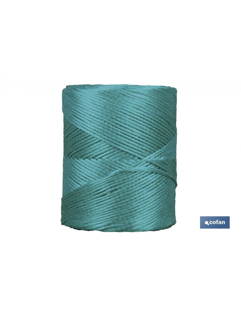 Hilo de rafia color verde, sintética torcida a 1 cabo, derivada del polipropileno. 600 m. por kg. Indicada para paquetería, bricolaje, industria, agricultura, manualidades, etc.