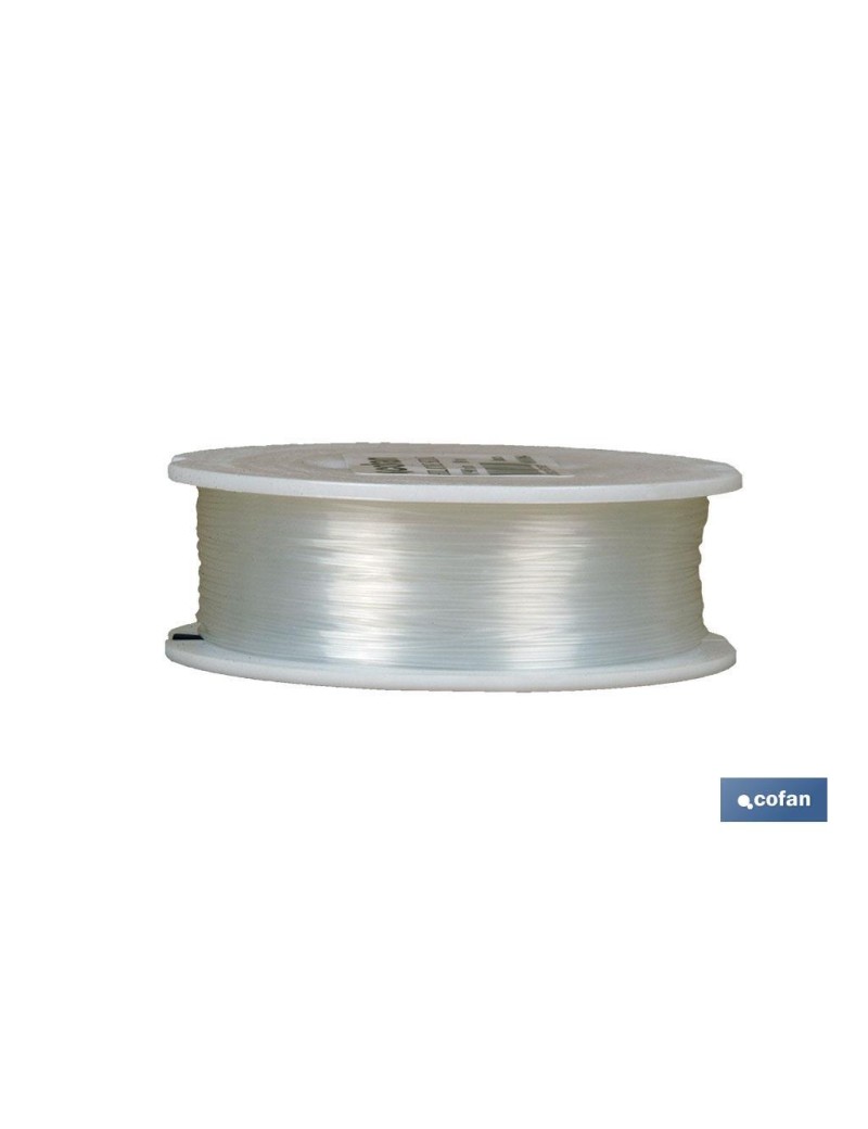 Hilo de sedal monofilamento 100% nylon, color blanco de 0,90 mm y 100 metros de longitud. En bobinas y carretes. Óptimo para pesca, escaparates, decoración, plomadas, construcción, etc.