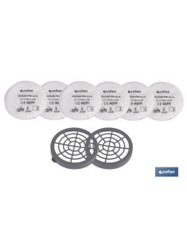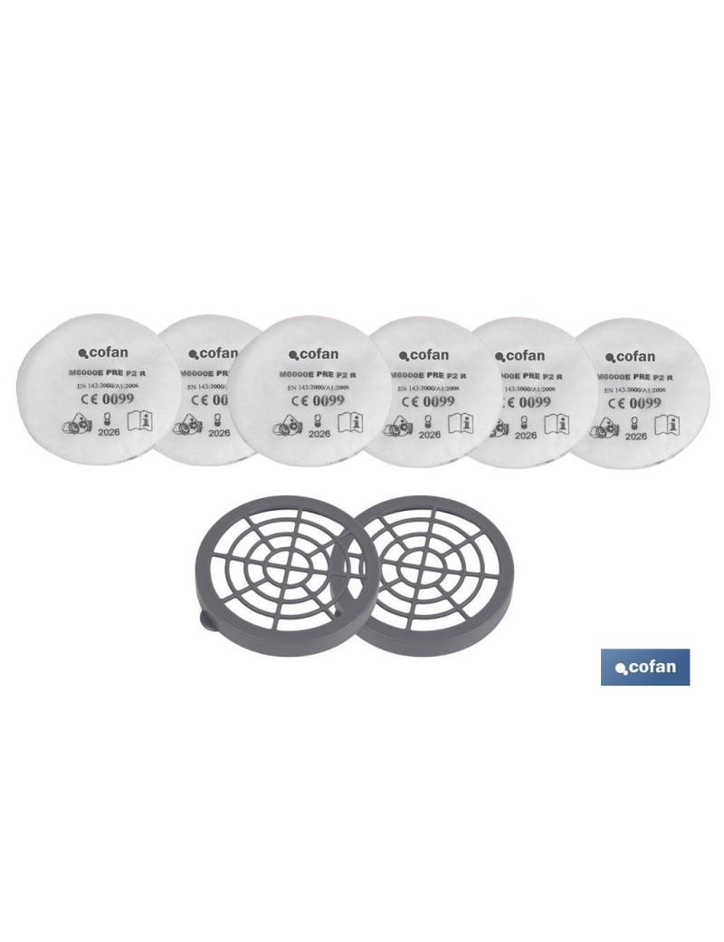 Juego de 2 plásticos más 6 prefiltros para filtros tipo A,B, E, K1 de la Ref. 11002128. CE 0099. EN 143/A1. El set cuenta con 8 piezas.