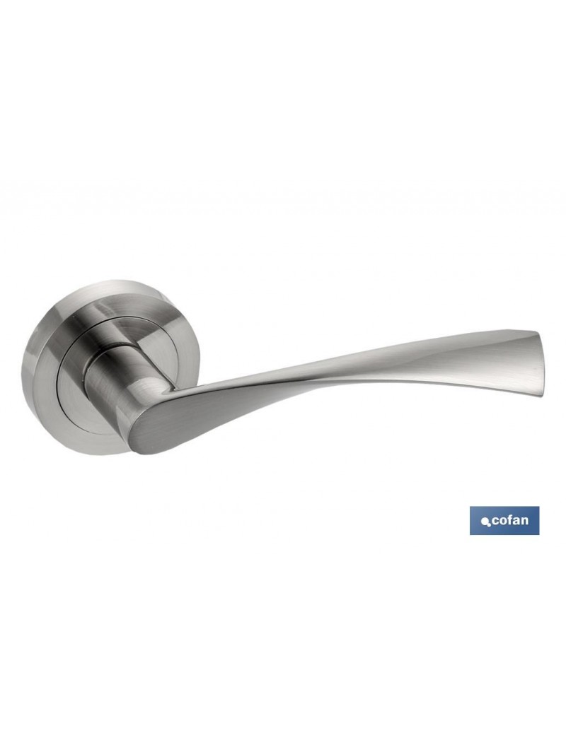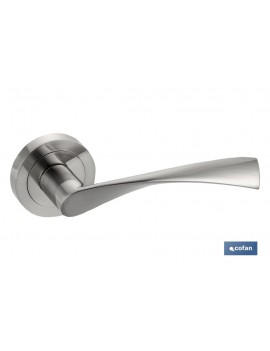 Juego manivela aluminio Roma con roseta redonda níquel.