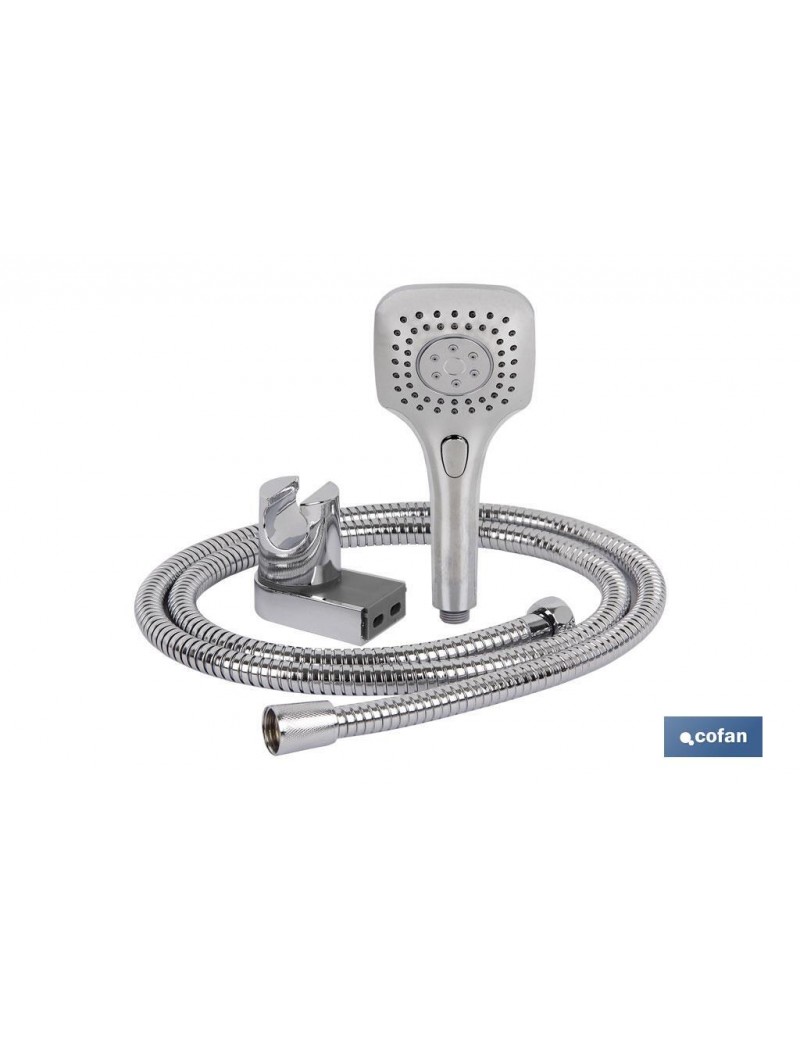 KIT DUCHA CUADRADA 3 FUNCIONES (MANGO+FLEXO+COLGADOR) (PACK: 1 UDS)