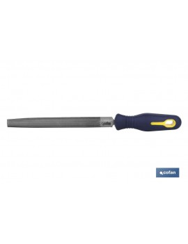 Limas de media caña con mango recambiable en modelos basto, entrefino y fino. Longitudes desde 85 hasta 135 mm y granos desde 9 hasta 28.