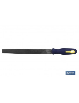Limas planas en punta con mango recambiable en modelos basto, entrefino y fino. Longitudes desde 85 hasta 135 mm y granos desde 9 hasta 28.