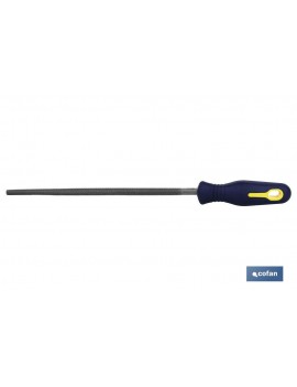 Limas redonda (limatón) con mango recambiable en modelos basto, entrefino y fino. Longitudes desde 85 hasta 135mm y granos desde 9 hasta 28.