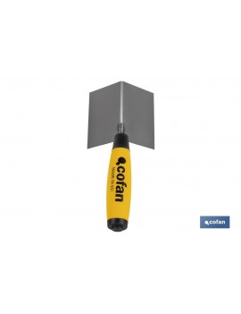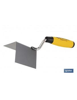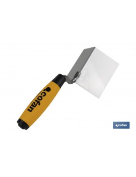 Llana de acero inoxidable con hoja pulida y en ángulo interior para rematar esquinas exteriores.Diseñada y fabricada con mango bi-componente para un agarre ergonómico y sin oscilaciones.Ángulos perfectos de 90°.
