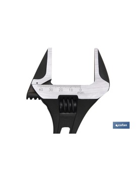 LLave ajustable gran apertura corta, 30% más ligera que una llave estándar. Cabeza extra fina que permite su uso en espacios limitados.