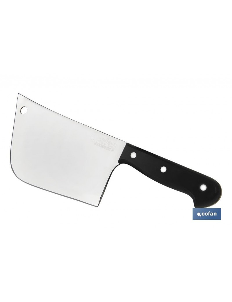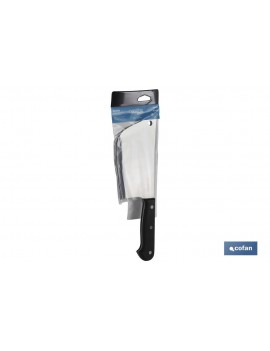 Macheta de cocinero profesional de óptima calidad. Cuenta con una hoja de acero inoxidable de 20 cm de longitud y mango fabricado en POM en color negro. Acabado pulido mate. Producto de alta resistencia y durabilidad. Envasado en blíster unitario. Fabricado en Albacete.