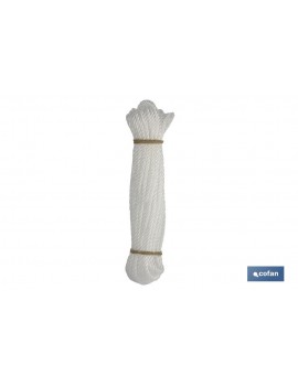 Cuerda compuesta por monofilamentos de polietileno torcidos a 4 cabos. Al ser fibras sintéticas es resistente al agua y tiene flotabilidad. Indicada para tenderos, persianas, naútica, pesca, etc.