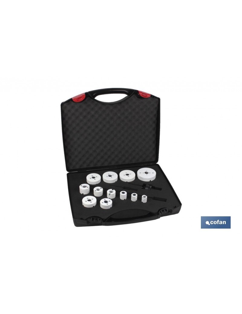 Maletín Coronas Bimetálicas Industrial con 12 coronas, 2 husillos y extensión.