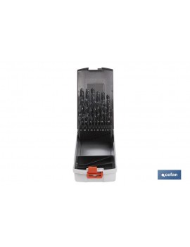 Maletín Surtido (25 unid) brocas en acero rápido rectificadas. Modelos en acero rápido, cobalto y titanio. 1 unidad de Broca desde 1mm hasta 13mm.