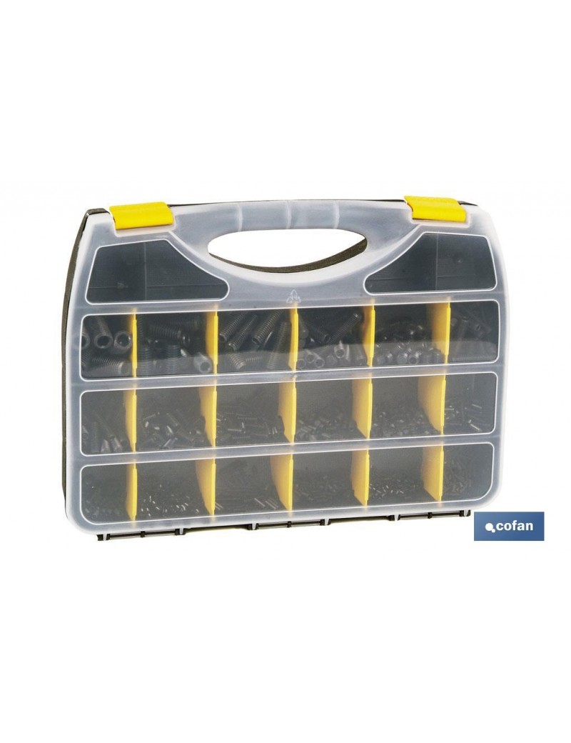 Contenido-Medidas: 885 pcs. 18 medidas (M3, M4, M5, M6, M8, M10, M12, M14 y M16)