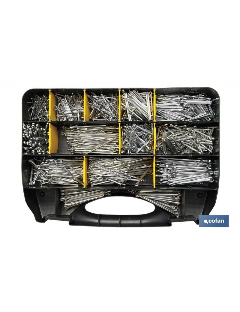 Maletín surtido pasadores de aleta DIN-94. Contiene 1250 pasadores.