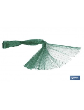 Red de malla antipájaros ligera, robusta y muy suave. Actúa como defensa pasiva contra los pájaros, de tal forma que protege los cultivos sin dañar a los animales. No impide la penetración de la luz. Malla de protección de polietileno para frutas, plantas, verduras, jardín. Se puede utilizar como red para pájaros, red para verduras, malla de protección, malla de cubierta, etc. Las mallas antipájaros Cofan protegen los frutos de su trabajo de los depredadores. Malla tejida de polietileno con alta densidad, fuerte y duradera. Esta malla está estabilizada a los rayos U.V. Cuenta con diferentes tamaños de altura y de longitud. Su composición es de 7 gramos por metro cuadrado (7g/m2). Fácil de instalar. La malla antipájaros se puede cortar a cualquier tamaño y no se desenreda.