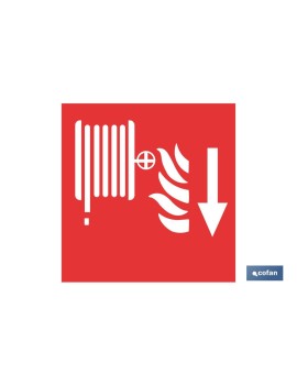 Señal luminiscente de socorro Manguera Extinción abajo.