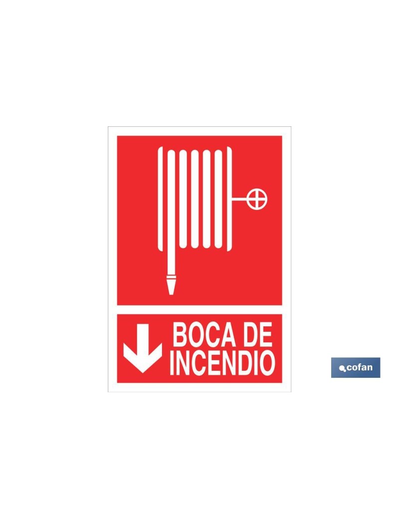 Señal luminiscente de socorro boca de incendio dirección abajo.