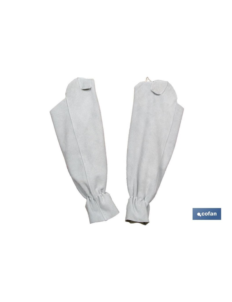 Manguitos o mangas protectoras para todo tipo de soldaduras, fabricado en piel natural de 1,5mm de espesor. Provisto de correas para ajuste fácil y cómodo en los hombros.