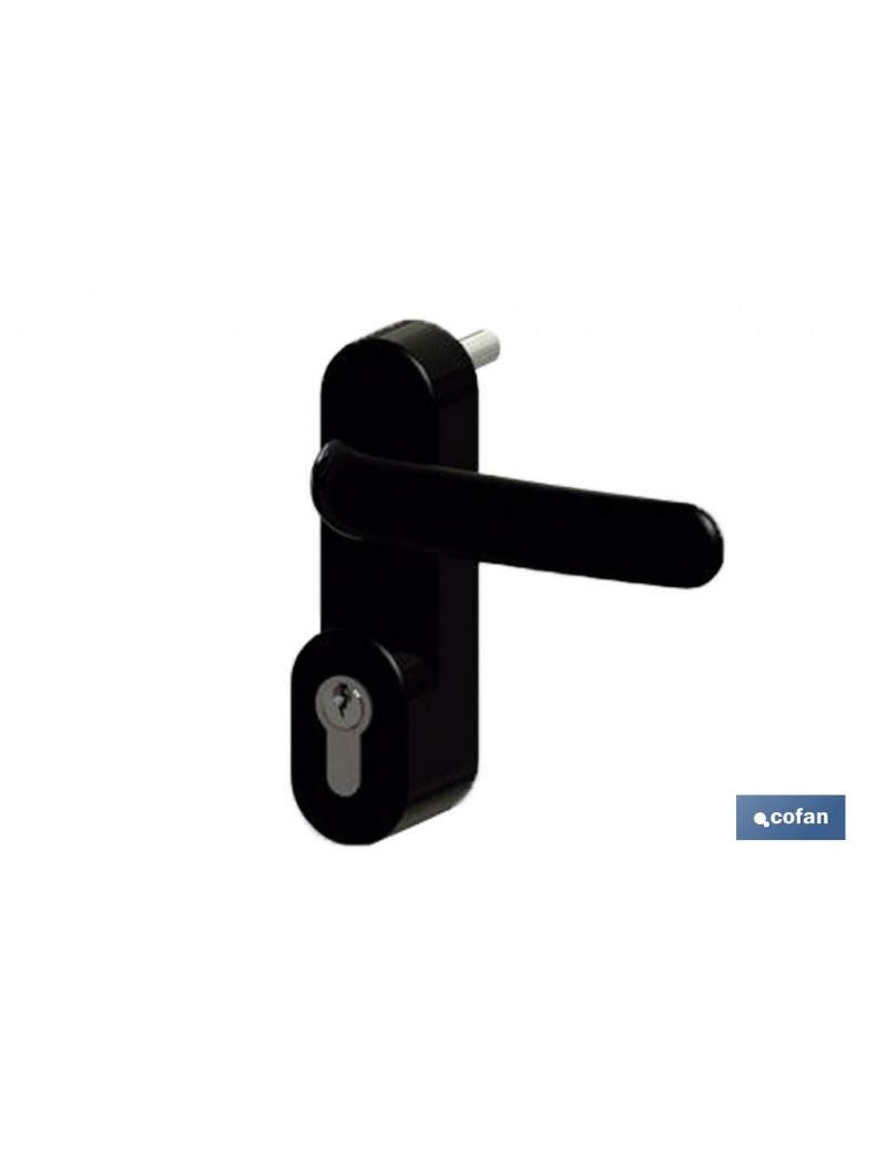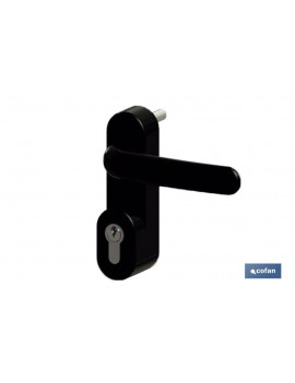 Manivela Antipánico de sobreponer con cilindro y 3 llaves con dispositivo Siempre Cerrado, en color negro.