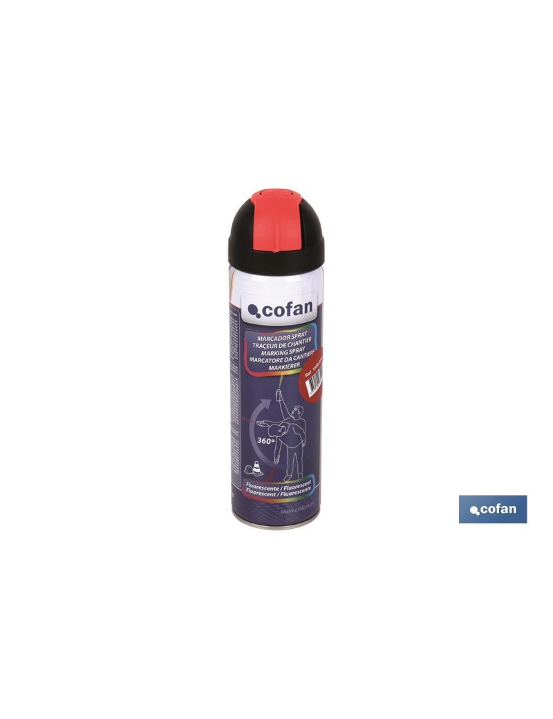 Pintura en Espray de marcaje de obra fluorescente, en envases de 500 ml, dotados con válvula de salida segura y disponibles en color rojo, amarillo, rosa y azul. Marcaje profesional de obras, edificaciones y carreteras. También apto para su aplicación en túneles y minería. Los marcajes son visibles claramente durante 6-9 meses. Se puede aplicar hasta con temperaturas de –20 °C.