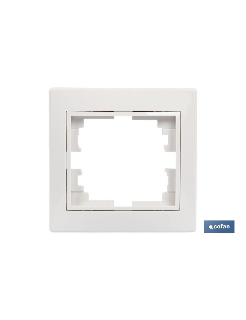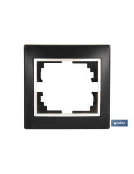 Marco para un elemento de mecanismos eléctricos de empotrar. Colores blanco y negro. Dimensiones 83x81x10 mm.