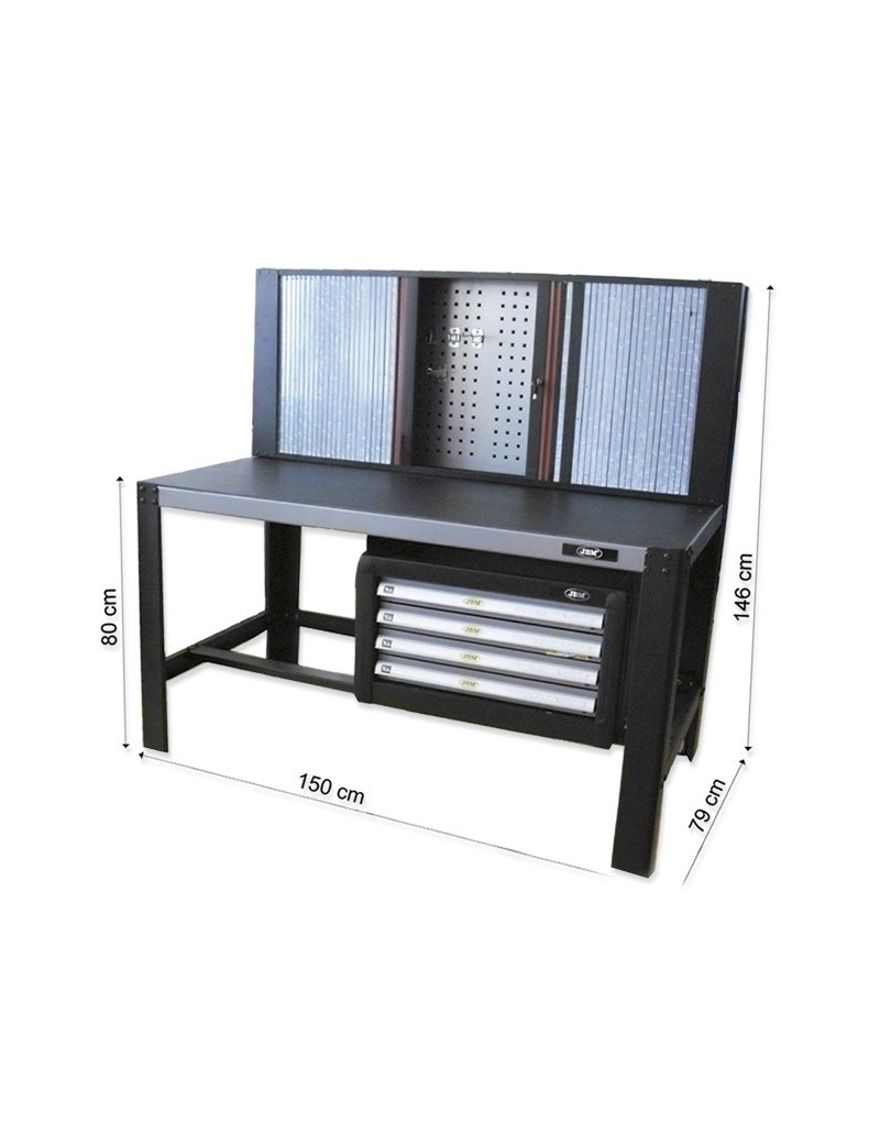 - PANEL PARA HERRAMIENTAS - CON PERSIANA PLEGABLE - 4 CAJONES INTERIORES Medidas: 150 x 75 x 146cm