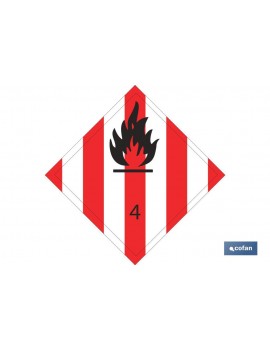 Señalización Adhesivos MATERIAS SOLIDAS INFLAMABLES AUTORREACTIVAS Y EXPLOSIVAS DESENSIBILIZADAS SOLIDAS. Medidas 100x100mm y 300x300mm