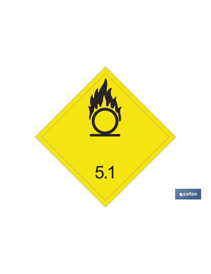 Señalización Adhesivos MATERIAS PELIGROSAS - MATERIAS COMBURENTES. Medidas 100x100mm y 300x300mm