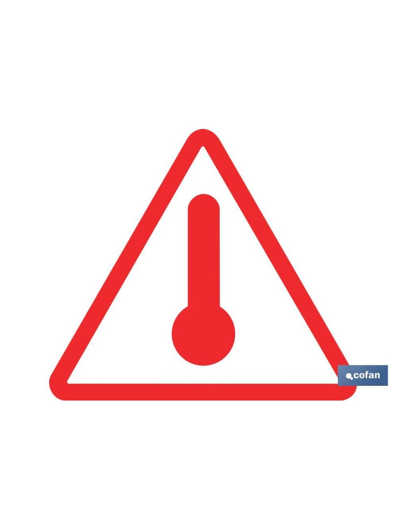 Señalización Adhesivos MATERIAS PELIGROSAS - PELIGRO ALTAS TEMPERATURAS. Medidas 300x300mm