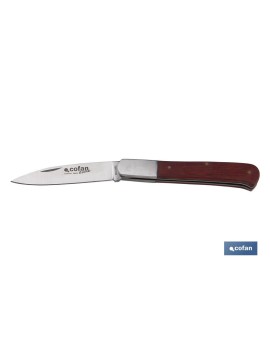 Navaja Cabritera de óptima calidad. Cuenta con una hoja de acero inoxidable de 8 cm de longitud y mango fabricado en madera. Producto de alta resistencia y durabilidad. Envasada en blíster unitario. Fabricada en Albacete (Castilla-La Mancha).