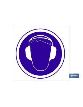 Señal de obligación, obligatorio uso de cascos auditivos.