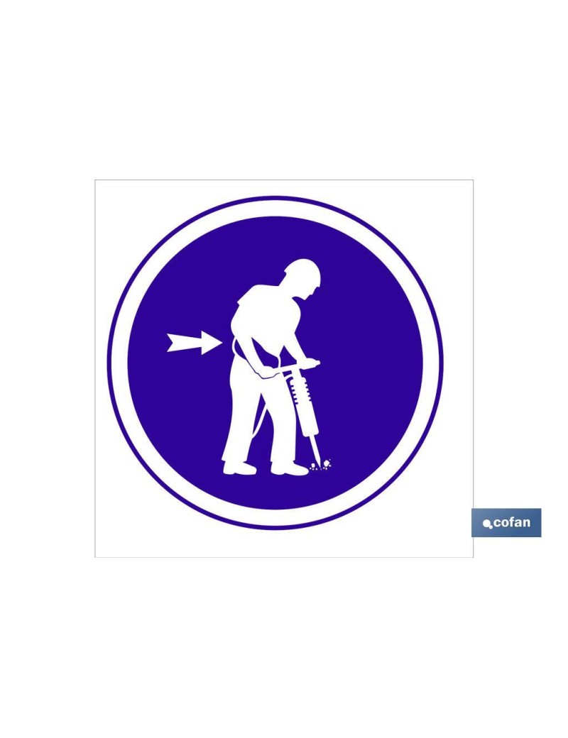 Señal de obligación, obligatorio uso de cinturon de vibraciones.