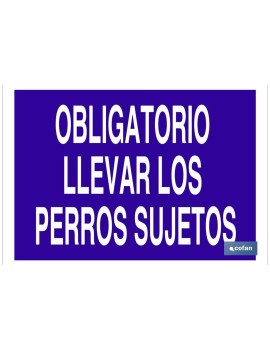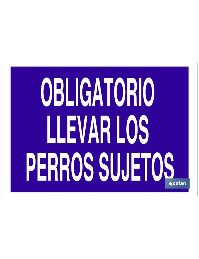 Señal de obligación con texto, obligatorio llevar los perros sujetos.