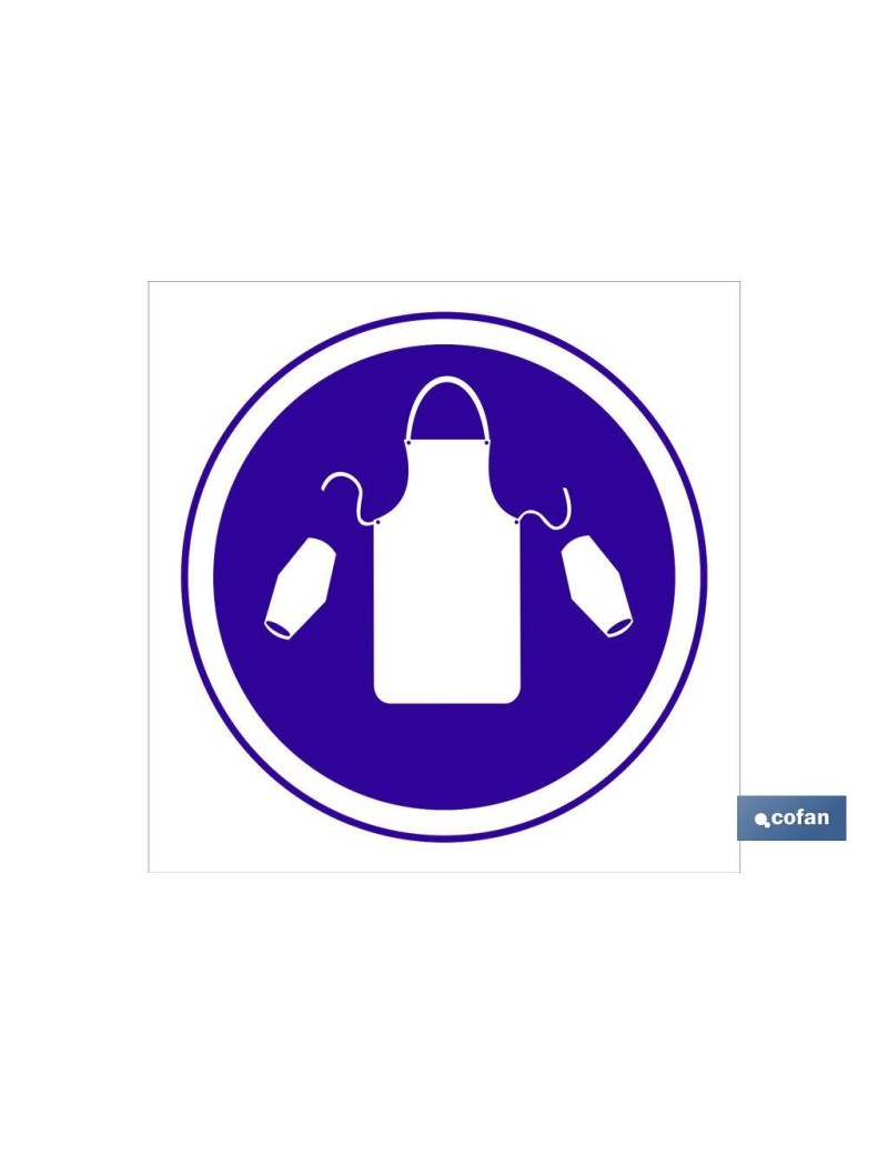 Señal de obligación, obligatorio el uso de mandil y manguitos.