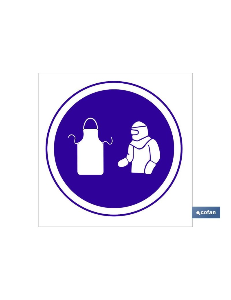 Señal de obligación, obligatorio el uso de mandil y manguitos.
