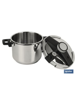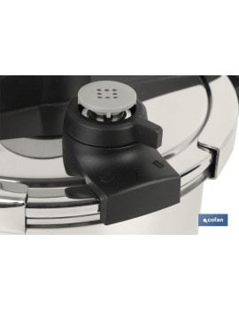 Olla a presión modelo Queen de inducción antiadherente fabricada en acero inoxidable 18/10. Apta para todo tipo de fuegos. Con fondo multicapa termodifusor proporcionando el mayor aprovechamiento del calor. Tiene sistema antideslizante que permite abrir sin esfuerzo y dos asas. Posee 3 dispositivos de seguridad. También cuenta con escala medidora en su interior. Consiga productos de calidad para su cocina. Disponemos de recambios. Disponibles con capacidades para 4 y 6 litros.