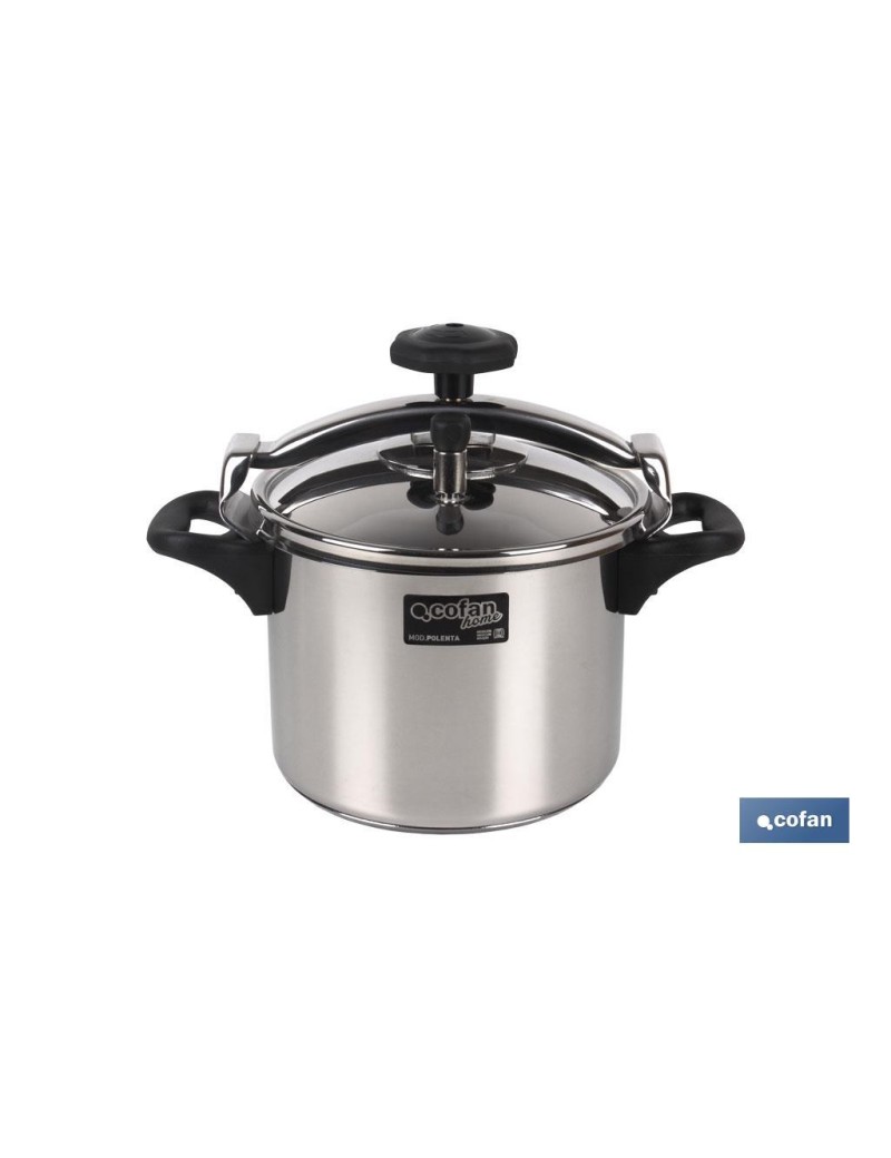 Olla a presión clásica modelo Polenta de inducción antiadherente fabricada en acero inoxidable Apta para todo tipo de cocinas. Con fondo tricapa que distribuye el calor uniformemente. Indispensable en su cocina, duradero y de calidad para un uso continuado.