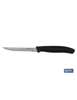 Pack de 12 unidades de cuchillos de cocina micro Modelo Ginger. Cuenta con una hoja inoxidable de 10,5 cm y mango fabricado en polipropileno en color negro. De alta resistencia y durabilidad. Cuenta con nueva tecnología en el tratamiento térmico de la hoja de cinco etapas que proporciona al acero unas cualidades de tenacidad y dureza. Su diseño en hoja estrecha y puntiaguda le permite realizar cortes incisos fácilmente en piezas de carne.Peso 25 gr.Espesor 0,8mm