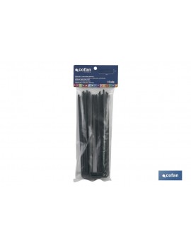 Pack en blíster de 10 grapas en forma de U para fijar el césped artificial. Sus medidas son de 15 centímetros.