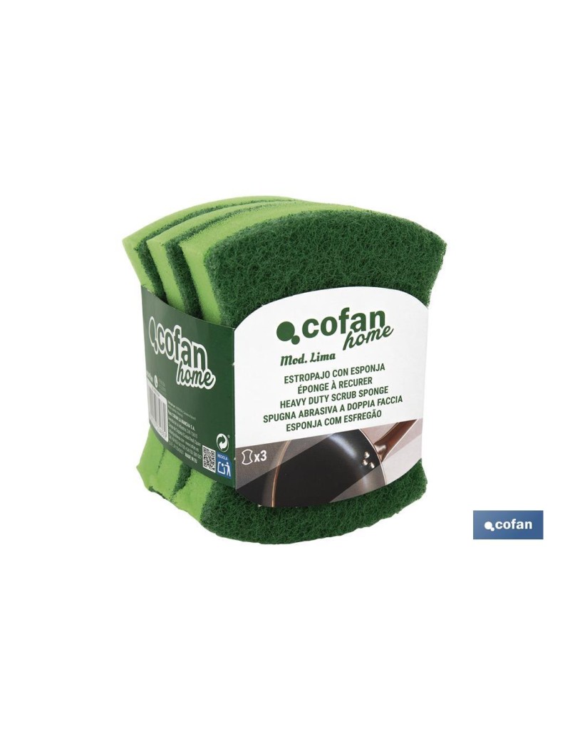 PACK DE 3 ESTROPAJOS VERDES CON ESPONJA MODELO LIMA venta unitaria (PACK: 1 UDS)