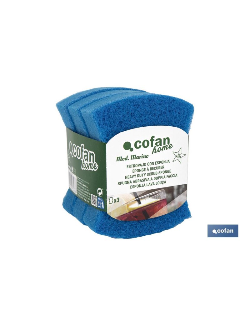 PACK DE 3 ESTROPAJOS AZULES CON ESPONJA MODELO MARINO (PACK: 1 UDS)